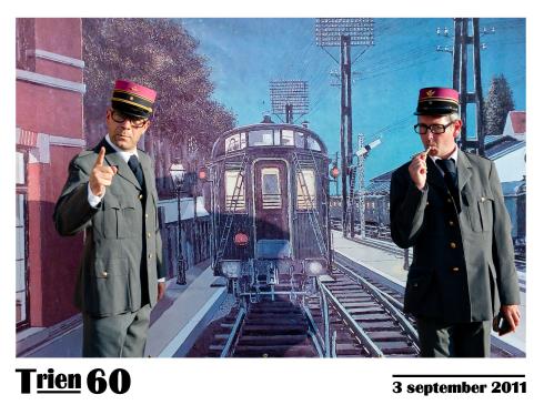 De gasten aan dit spetterende verjaardagsfeest werden vriendelijk maar beslist ontvangen door deze twee olijke treinconducteurs. Met het reiskaartje enkele richting boden zich aan op het perron voor een leuke meeneem foto.