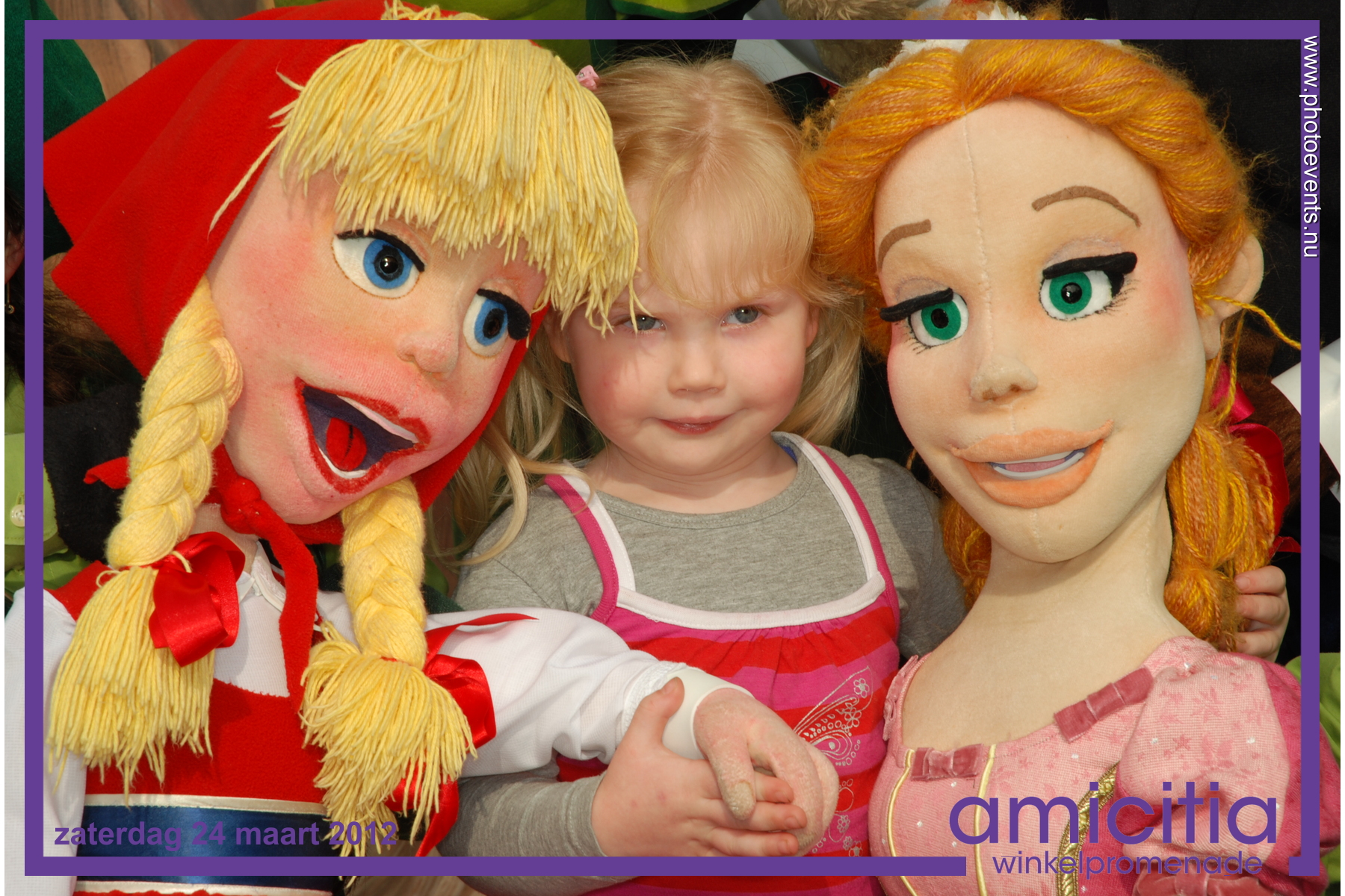 Het was weer es wat anders in het winkelcentrum Amicitia te Amersfoort. Na een leuke kindershow met veel liedjes was het aanschuiven om een foto te laten maken samen met de figuurtjes uit het Sprookjesbos. Direct klaar en dus veel glunderende gezichtjes met de foto in de hand.