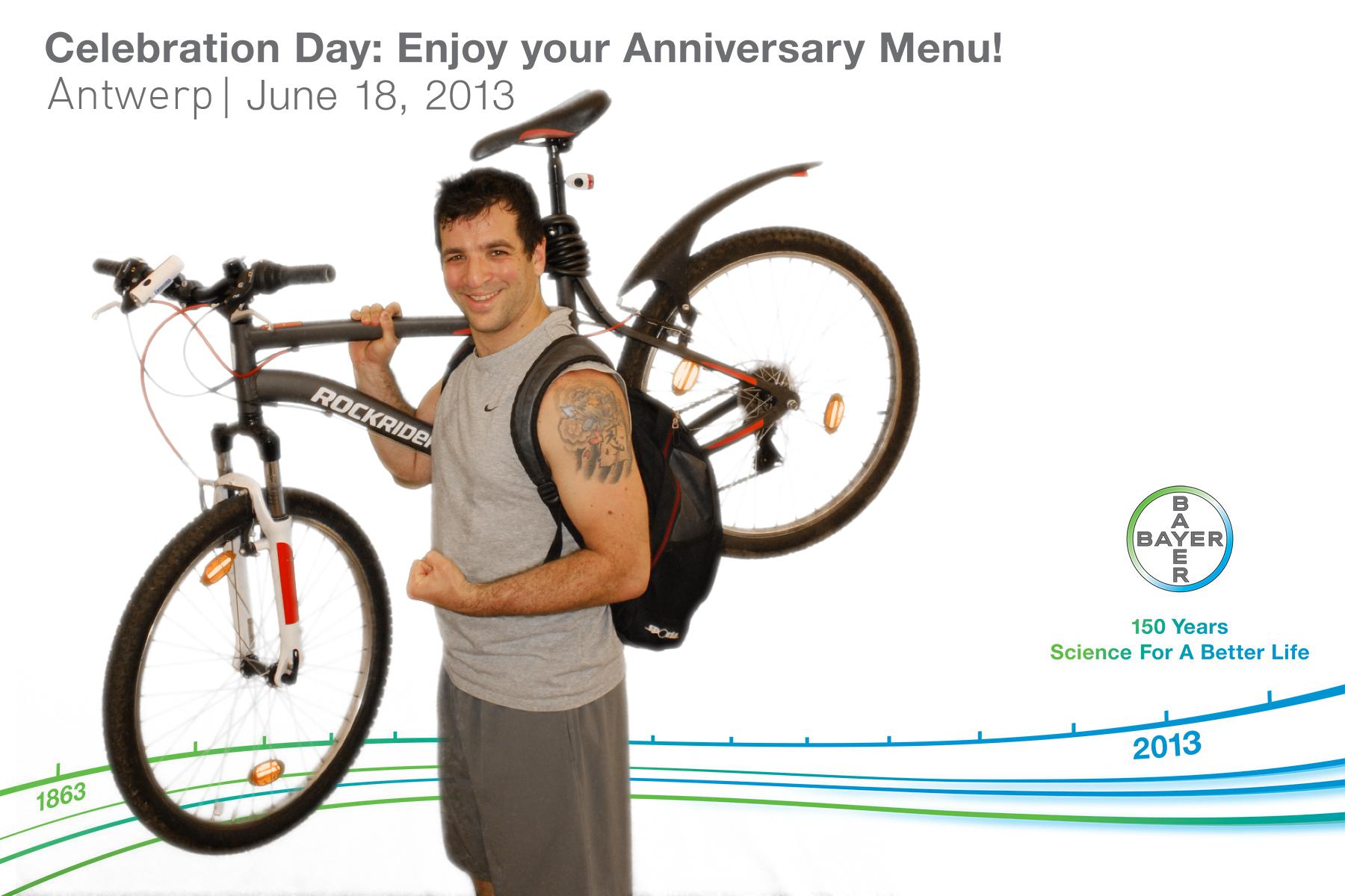 The weather was too fantastic with temperatures over 34 degrees outside the tent. I dare not to think how hot it was inside, but I burned my fingers on the printers 🙁 This happy biker was on his way home after the first shift.