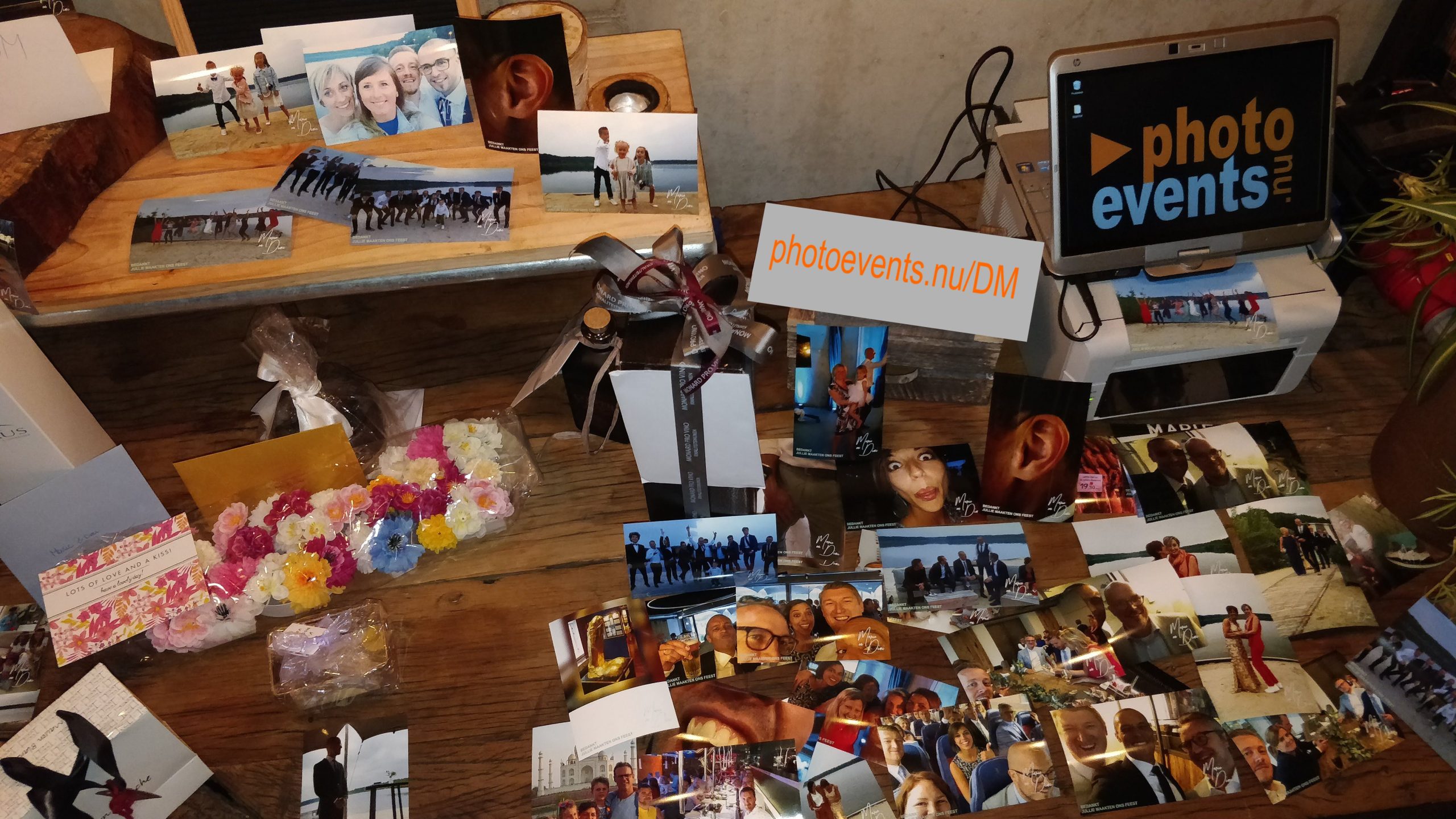 Guests to the wedding were invited to use our webprintservice and at the end of the evening over 400 pictures were printed automatically signed by the couple with a thankword. All pictures are now residing in the couple’s private webspace to watch over and over again. Each guest got their own personal copy.